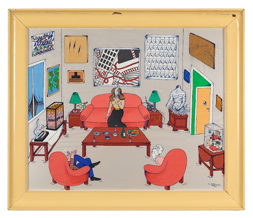 Porträtt av en samlare / Portrait of a Collector 1976 Gouache på siden / gouache on silk, 85 x 101 cm